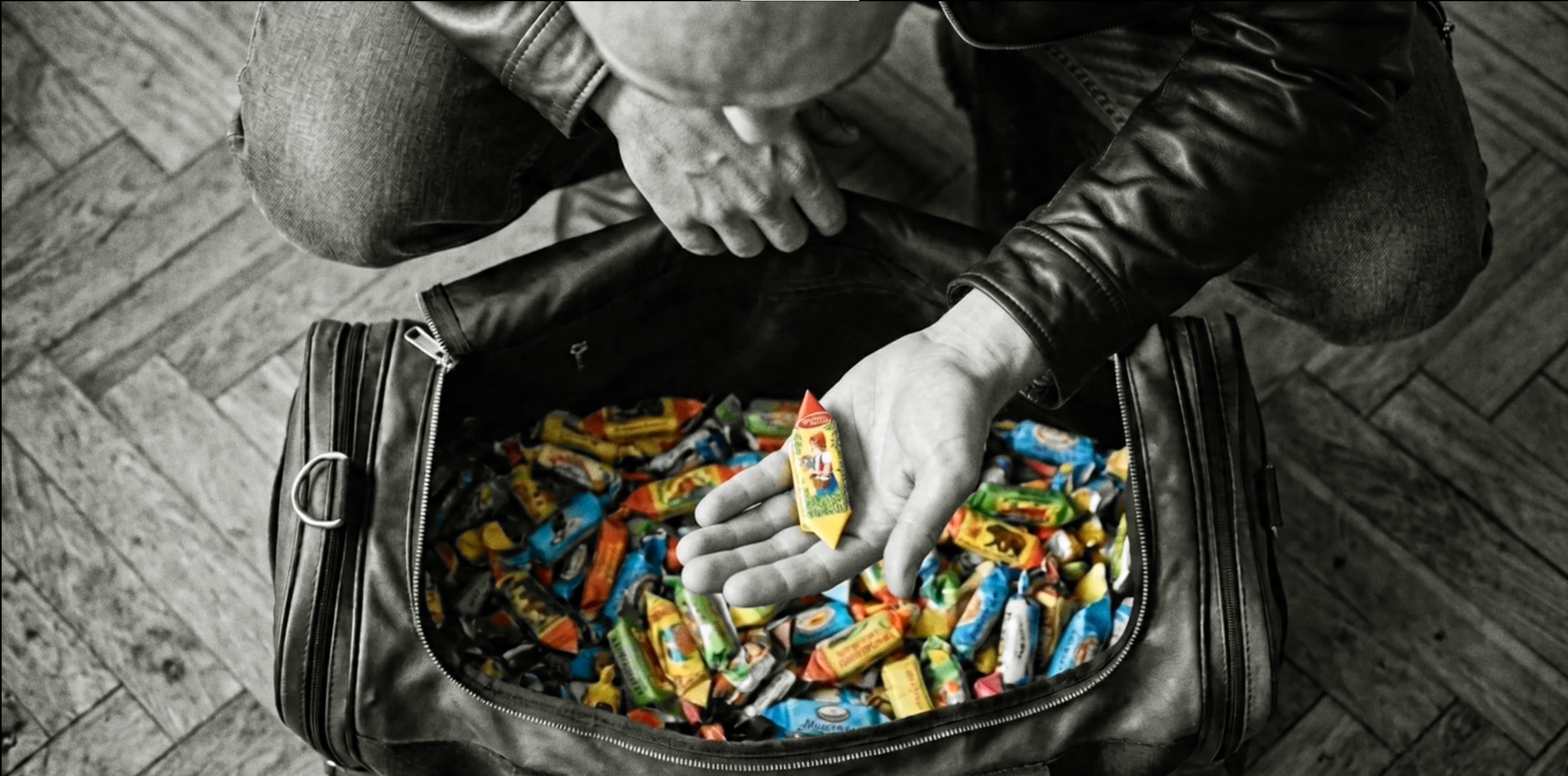 Я бы сделал сначала пустую сумку — типа убери конфеты.