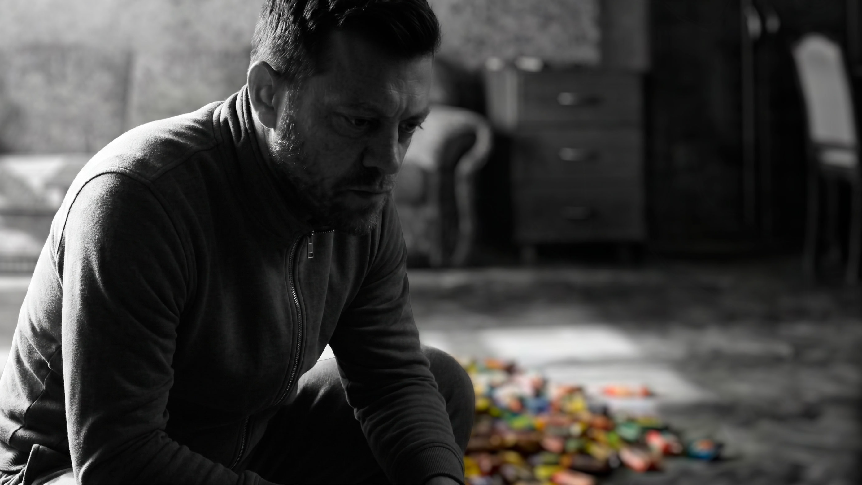 Я сдался и за 10 минут собрал кадр в фотошопе: вырезал напарника из удачной генерации, отзеркалил, наложил на нужный фон с правильным светом из окна, блюр на фон, добавил цветные конфетные фантики в передний план. Вышло идеально. Агент: