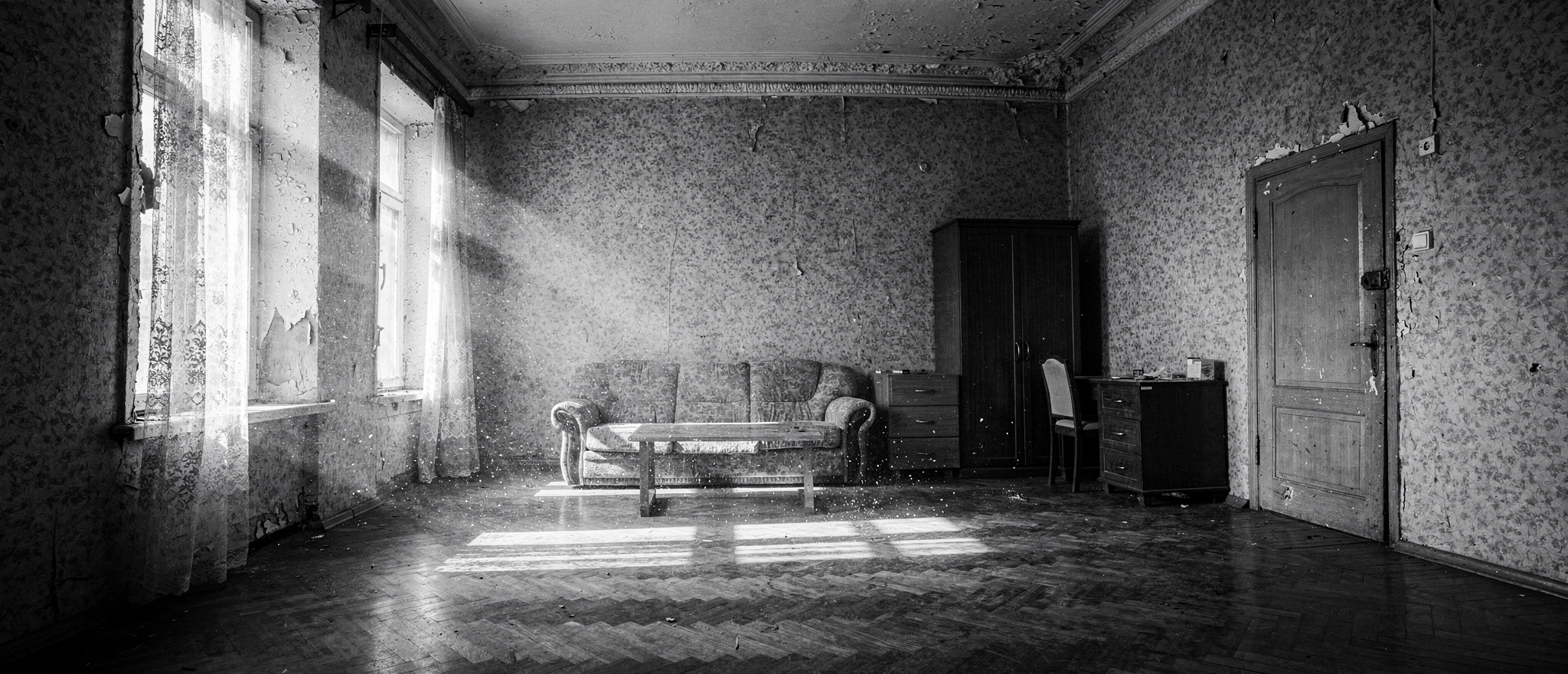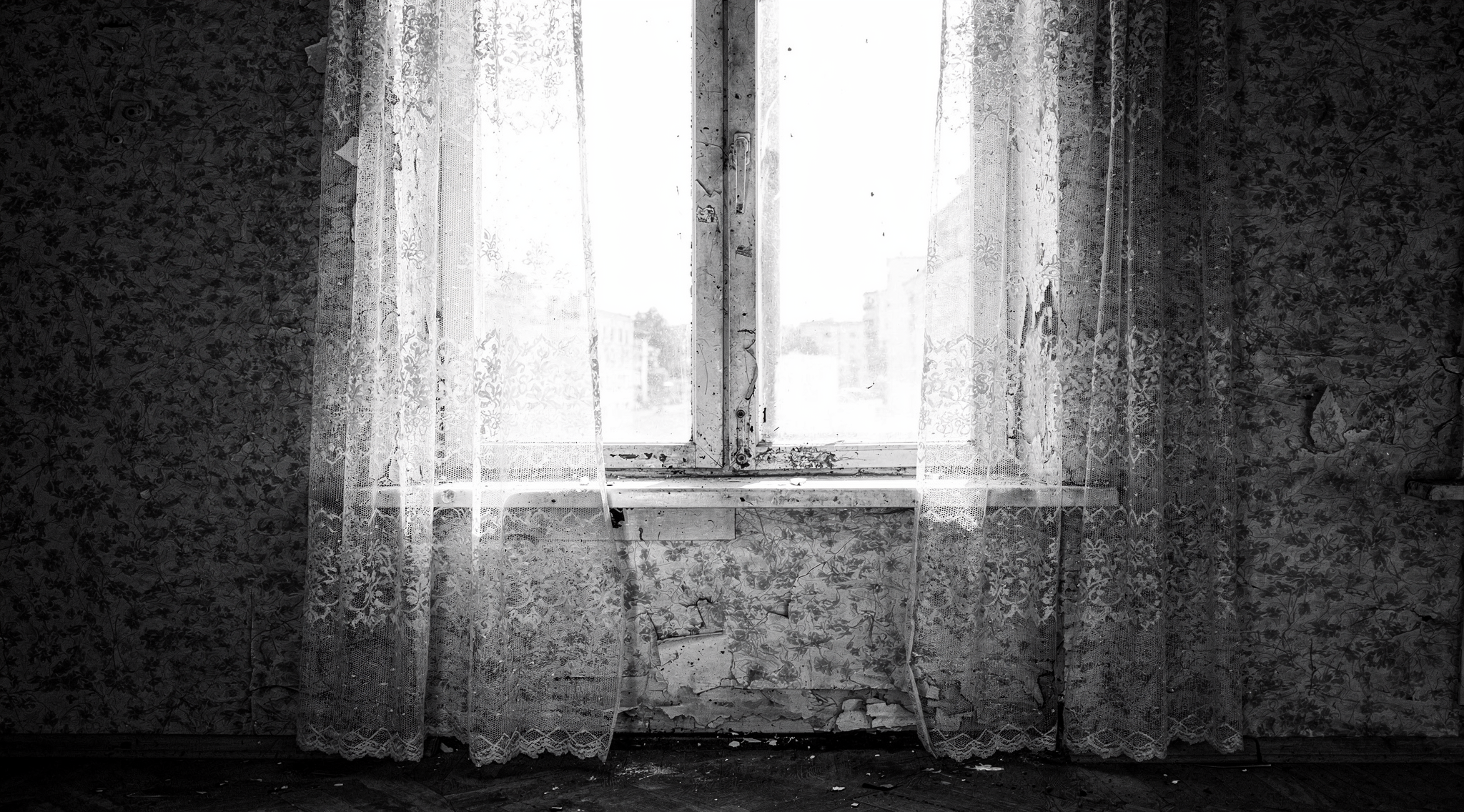 v5: "almost completely still, feet are frozen, dust particles float, curtain shifts slightly":