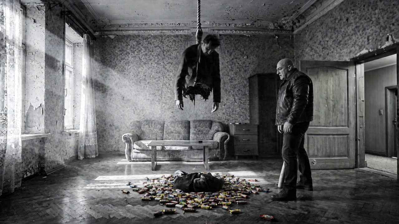 «shot1_pinata_corpse_open_door.jpg — дверь открыта, труп висит. Понимаешь, что дальше?»