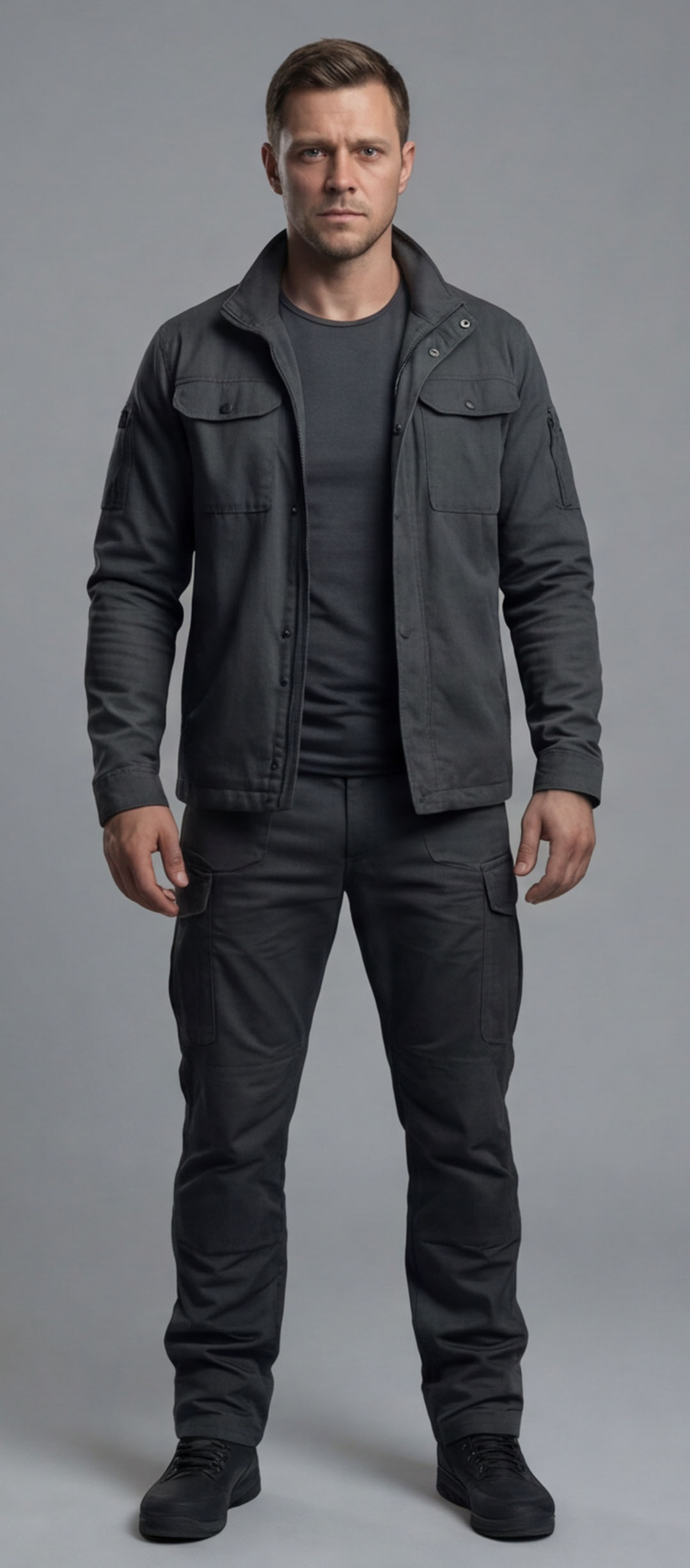 Склейка с обраткой обнажила: костюм на shot12_slap_setup_user.jpg (тёмная куртка) ≠ костюм на shot12_bg_user.jpg (светло-серый спорткостюм).
